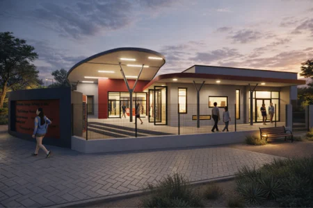 The Katutura Central Constituency Office is conceived as a contemporary civic landmark reflecting the resilience and cultural diversity of Katutura. Emerging from a history of displacement, the community’s strength is expressed through a bold red central volume symbolizing identity and civic presence.