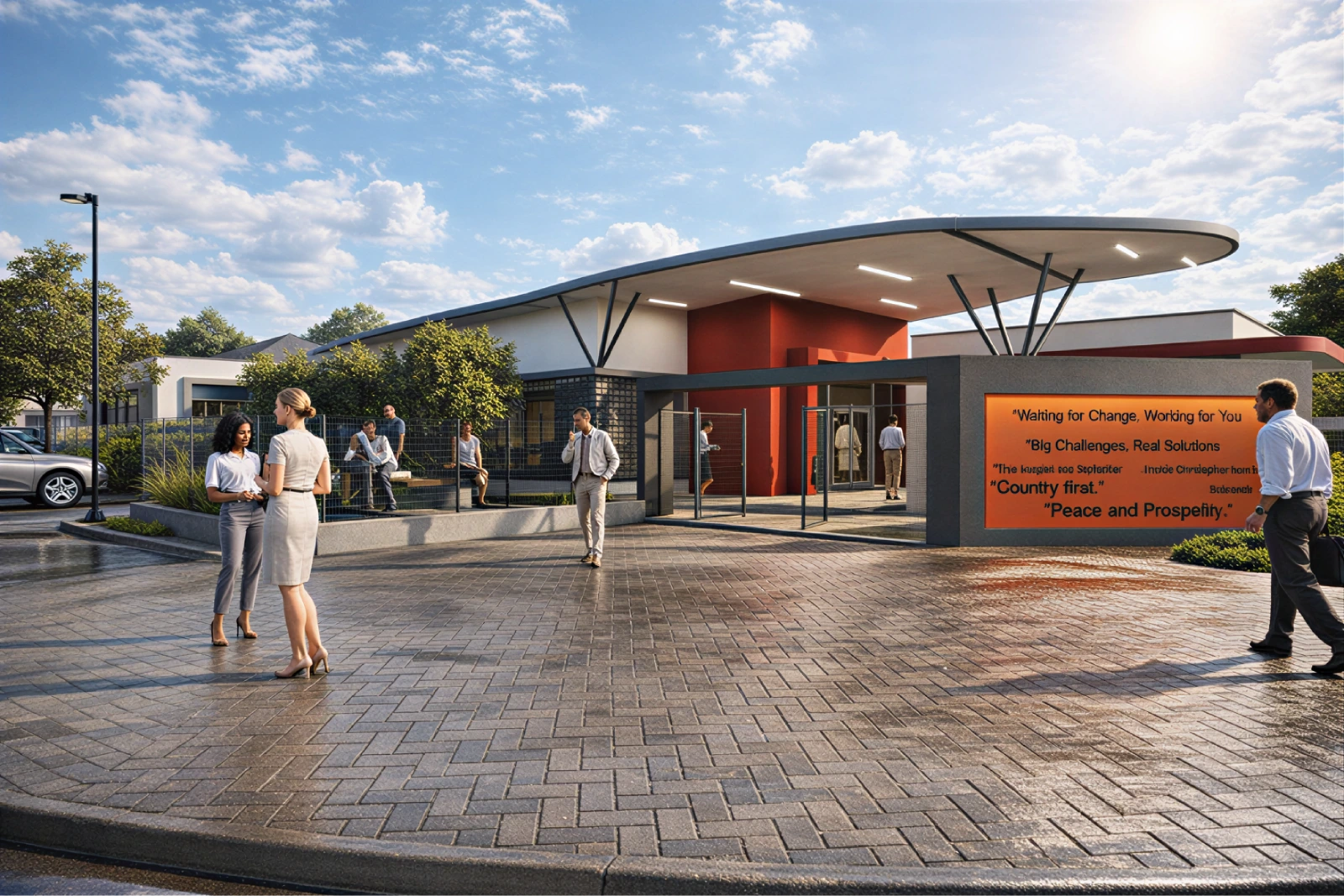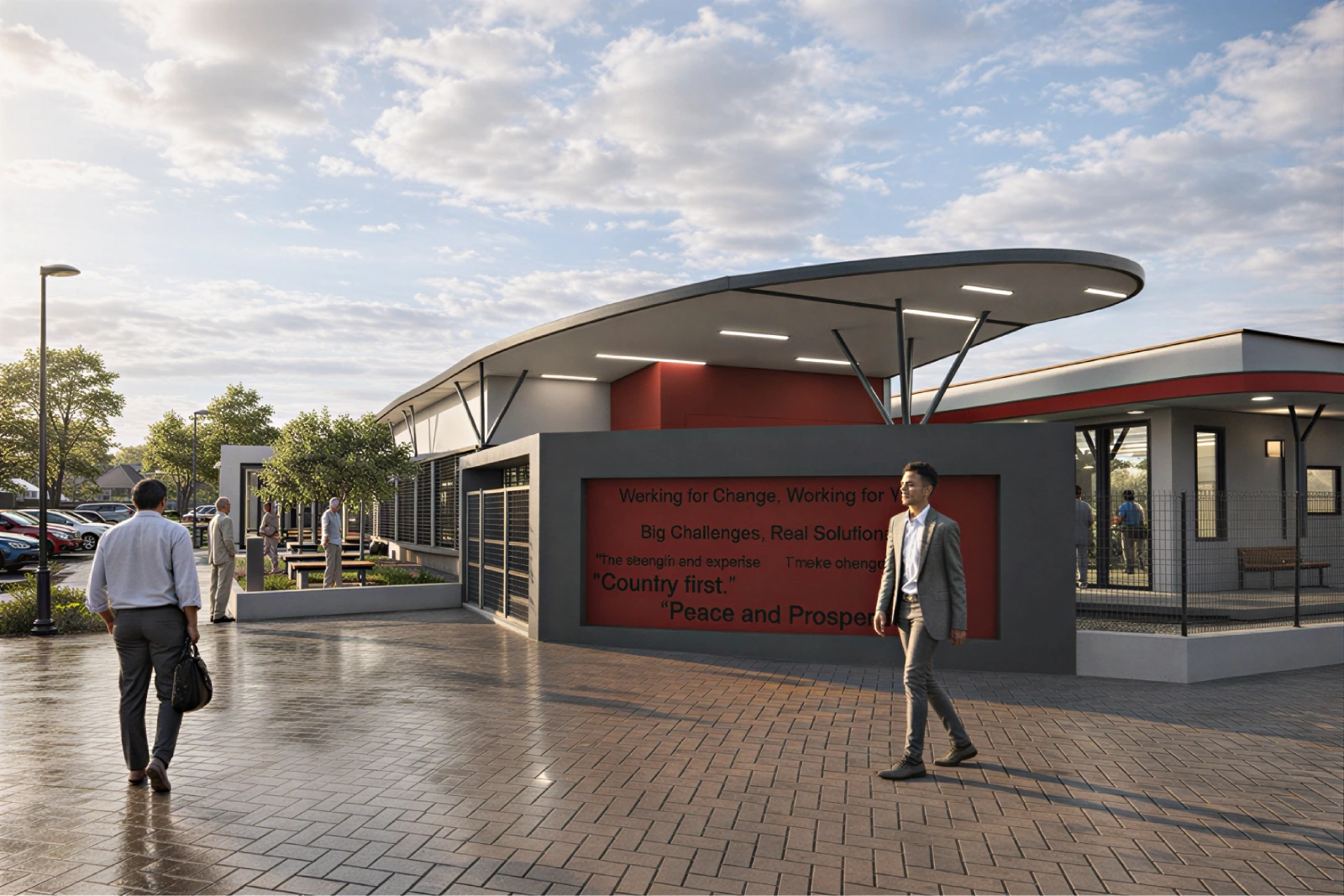 The building stands as a dignified, modern civic space designed for openness, unity, and public service.